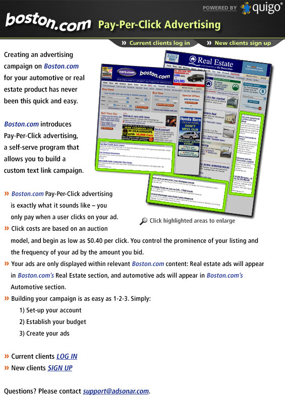 Current clients log in New clients sign up Questions? Please contact us Boston.com Cars footer sample Boston.com Real Estate footer sample Boston.com's Real Estate skyscraper sample Current clients log in New clients sign up