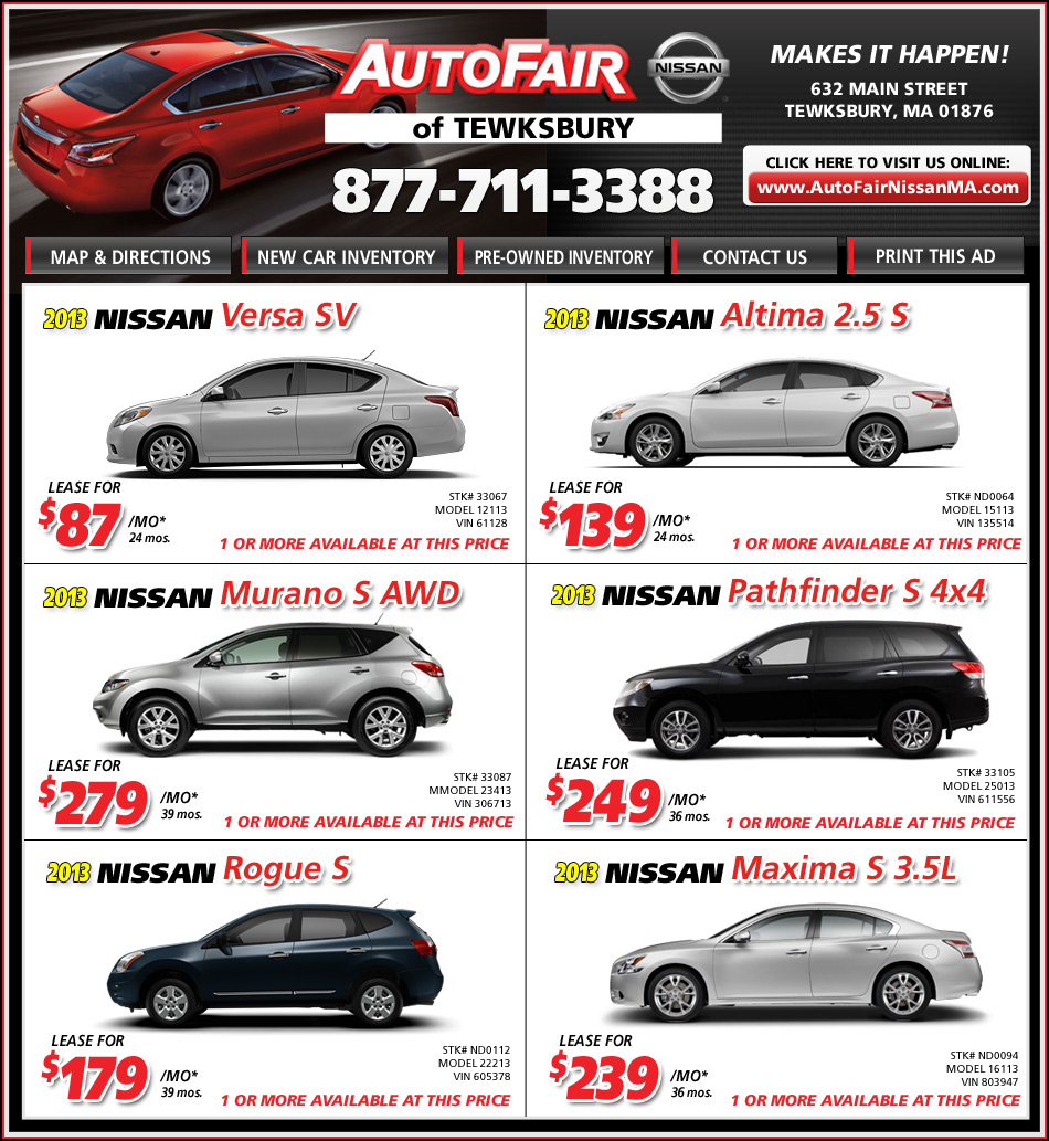 *With approved credit. $2,999 cash or trade due at signing plus tax, tag, acquisition, title and dealer fee. 12k miles per year allowable. Must finance with NMAC. Lease loyalty included. See dealer for full offer details. Offers expire 4/30/13.
