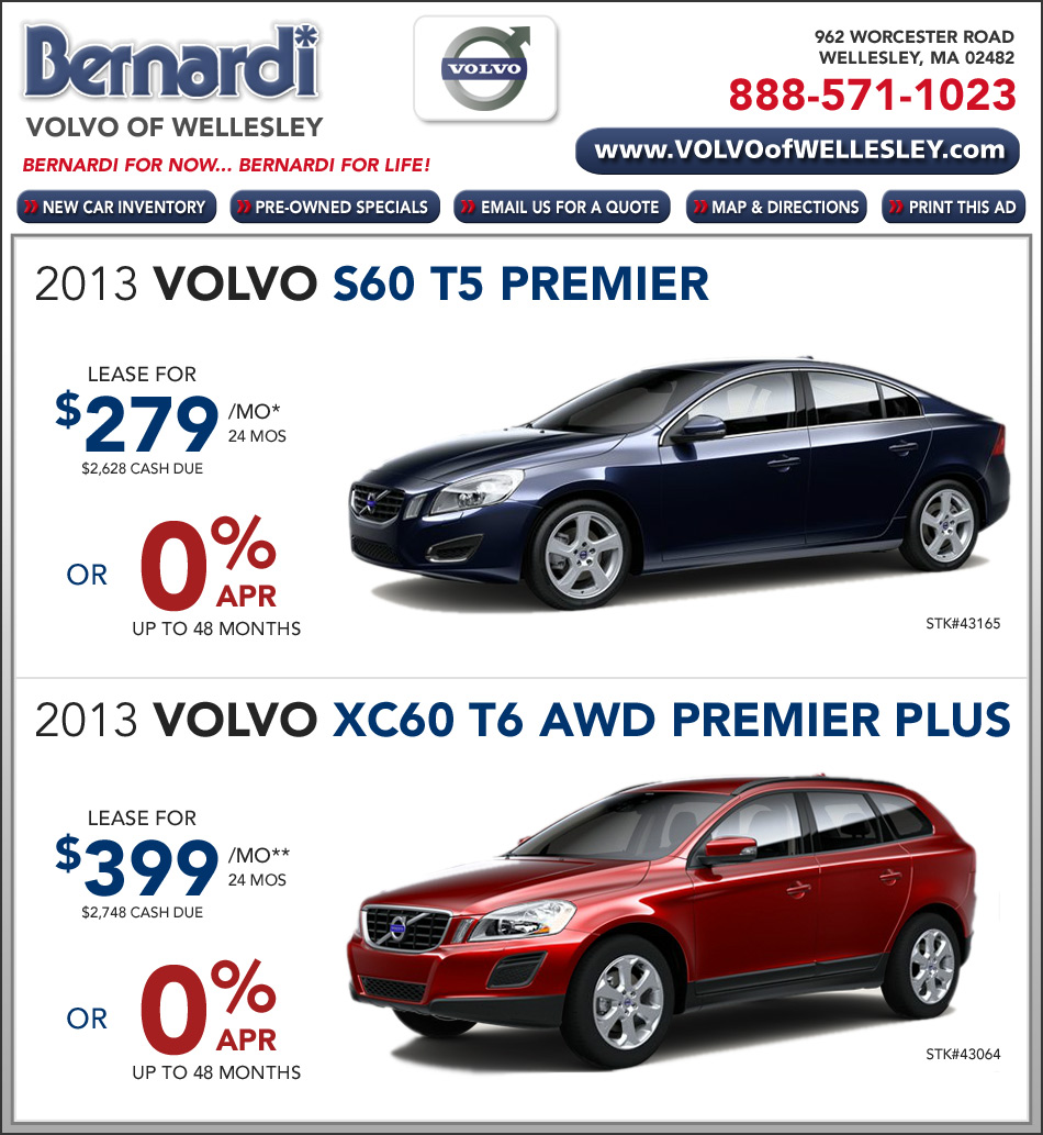 *24mo/10,000 per year lease. Not all lessees may qualify. $2628 down payment. Tax, bank fee, title, registration, documentation extra. Valid exclusively on dealer stock. **24mo/10,000 per year lease. Not all lessees may qualify. $2748 down payment. Tax, bank fee, title, registration, documentation extra. Valid exclusively on dealer stock. Supplies limited. Offer valid until 06/30/2013. Prior sales excluded. Limited form contract, on select models, with approved credit. Cannot be combined with any other offers. See dealer for details.