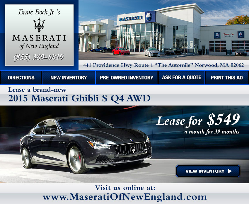 All orders will be taken on a first-come, first-served basis. Maserati of New England may, at its sole discretion, require a cash deposit in advance of a client's order. Residency and other restrictions may apply. All ordered cars will be priced at the MSRP at time of delivery; pricing is not guaranteed and may be subject to change.
