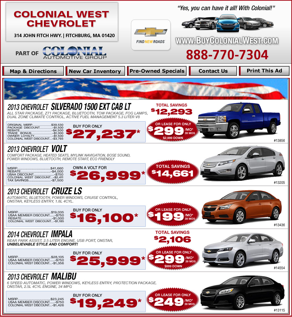 | *Tax, title, license, dealer fees, and optional equipment extra. Sale ends 5/31/13. |