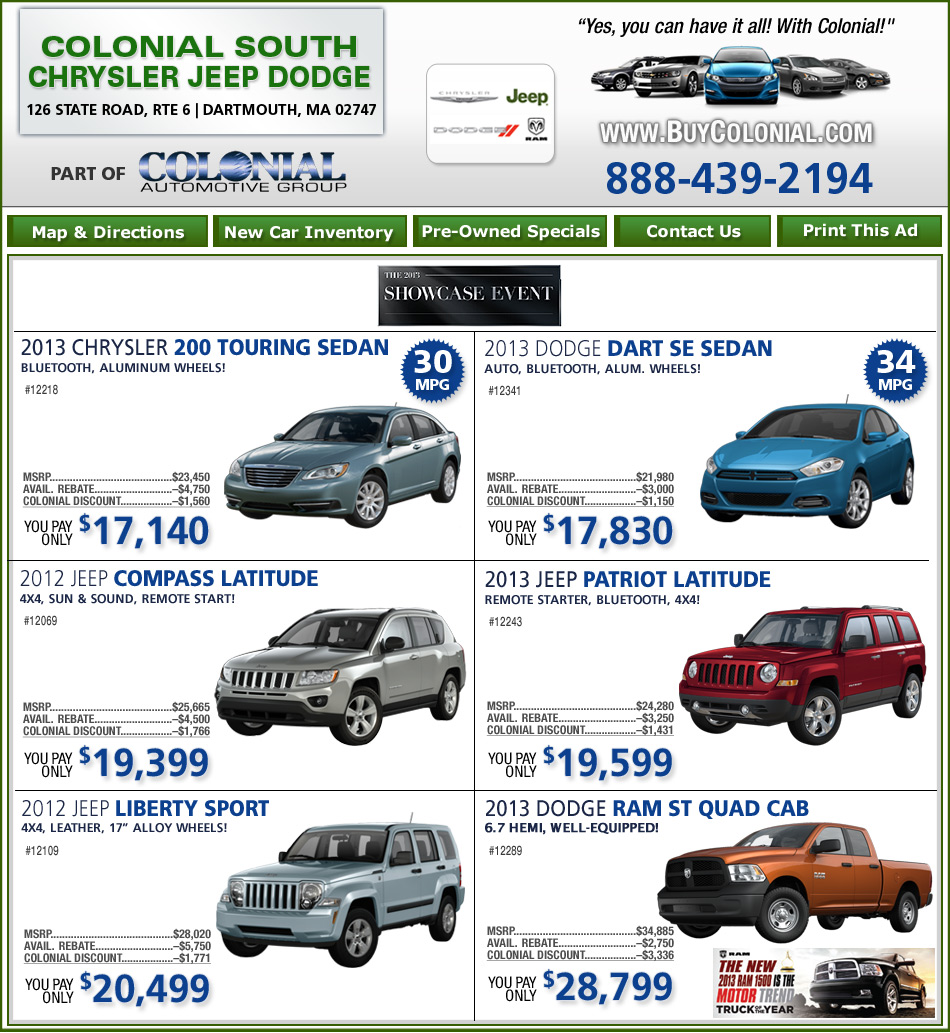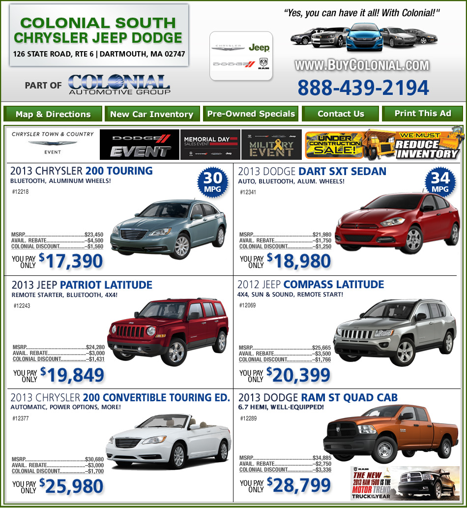 | All rebates to dealer. Must qualify for all rebates and incentives, including Conquest and Military, see dealer for details. Tax, title, reg. extra. Ends 4/30/13. |
