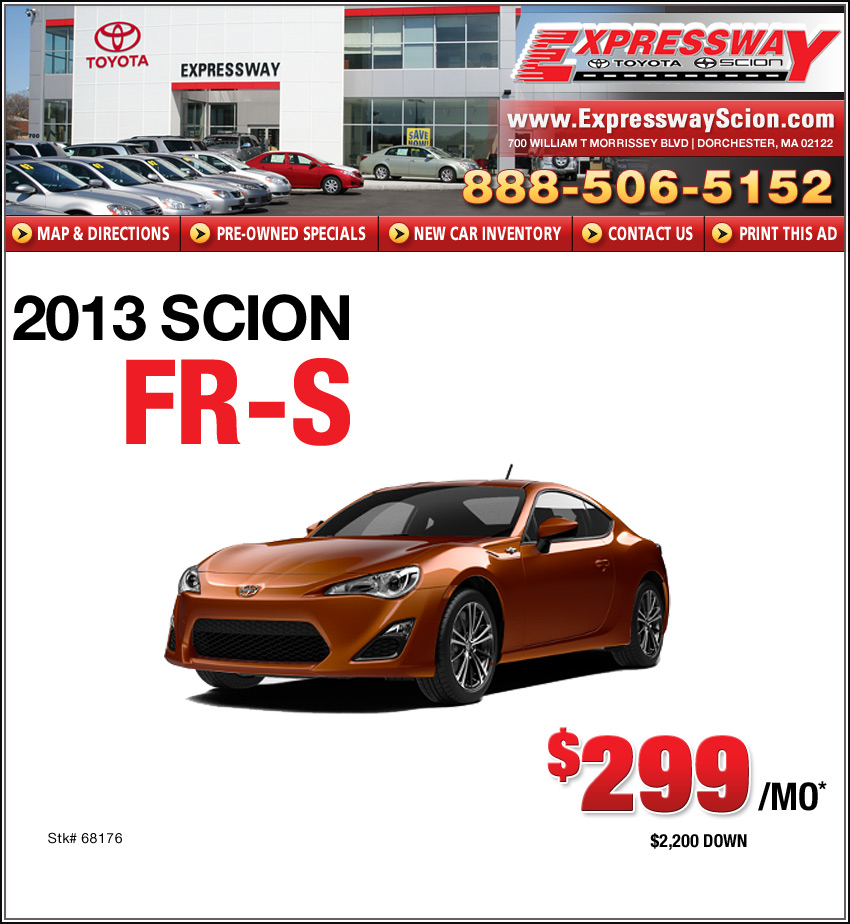 *$299 Payment includes tax. $650 Acquisition fee, $325 dealer documentation fee and $125 plate fee additional. On approved credit through TFS. Ends 7/8/13.