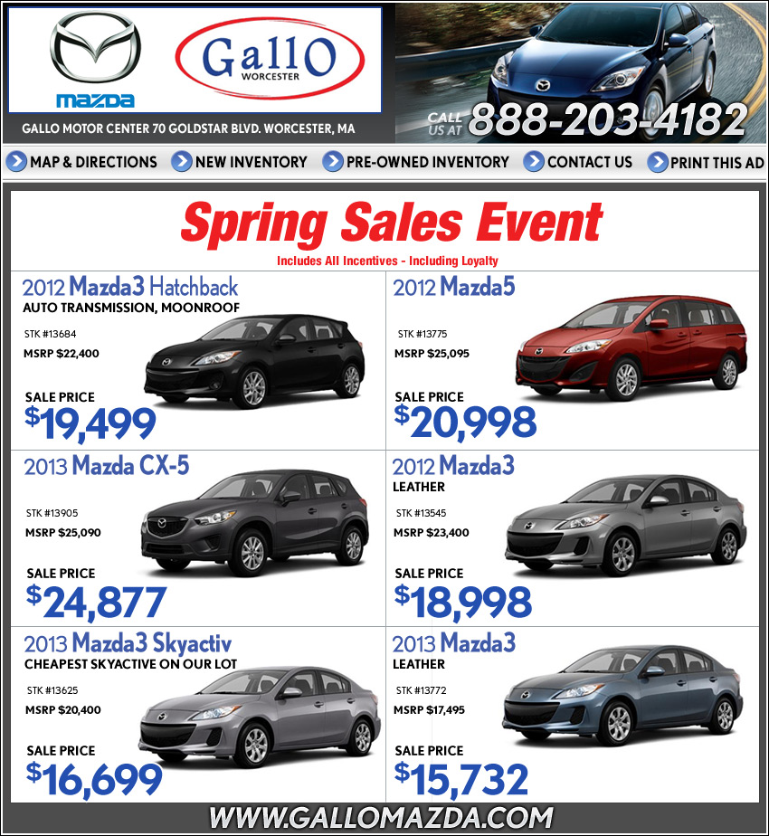*Prices include all incentives to dealer including loyalty. Tax,title,reg. fees extra. Sale ends 4/30/13.
