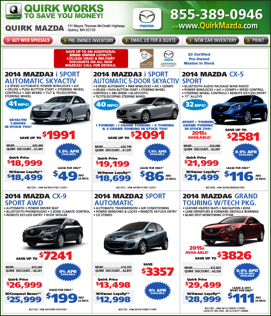 Visit our Website! View More New Car Specials Pre-Owned Specials Contact Us For A Quote Get Special New Car Inventory Print This Ad