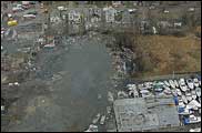 Reader Adam Serafin of Cambridge sent in the photo on the left taken from a Pictometry image to show how the Danvers explosion site looked before the blast. The photo below on the right was taken the afternoon after the blast by David L. Ryan of the Boston Globe staff.