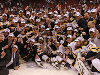 The Bruins posed with the Stanley Cup after defeating the Canucks in Game 7 of the Stanley Cup Final at Rogers Arena in Vancouver on June 15, 2011. (Globe Staff Photo/Barry Chin)