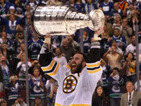 Bruins defenseman Zdeno Chara hoisted Lord Stanley's Cup after defeating the Canucks in Game 7 of the Stanley Cup Final at Rogers Arena in Vancouver on June 15, 2011. (Globe Staff Photo/Barry Chin)