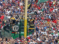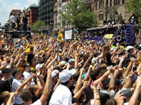 Fans cheered in Copley Square during the Bruins' victory parade June 18, 2011. (Pat Greenhouse/Globe Staff)