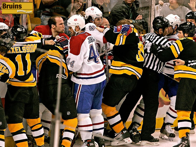 Emotions run high during a Bruins/Canadiens scrum in the 3rd period. (Globe Staff Photo / Barry Chin)