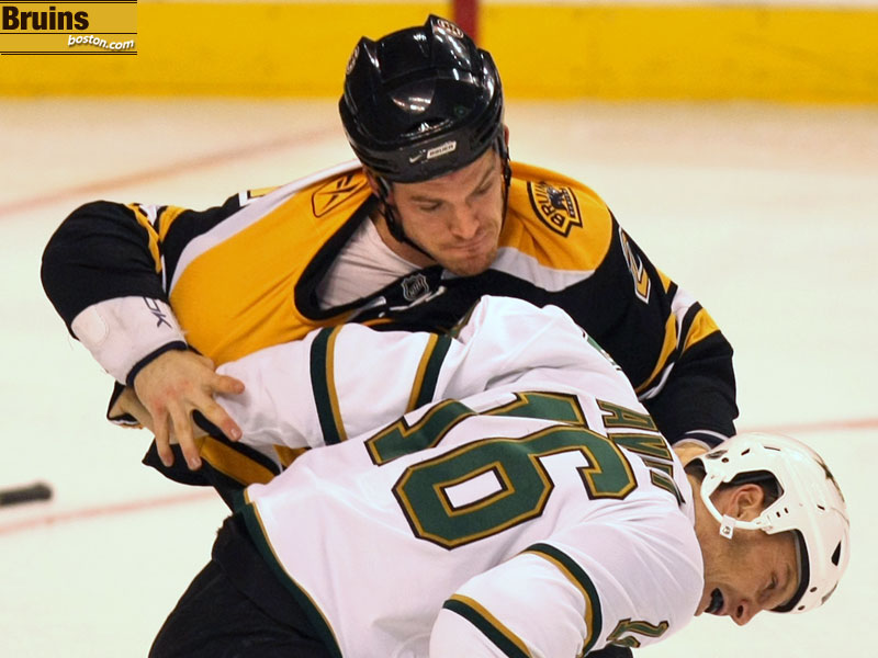 Bruins defenseman Andrew Ference takes some shots at Dallas agitator Sean Avery. (Globe Staff Photo / Justine Hunt)