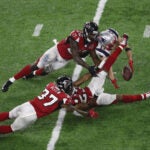 Stephen Gostkowski’s kickoff after Amendola’s touchdown could’ve been a game-changer, considering it pinned Atlanta at its 9 on the next drive. But a busted coverage allowed a 39-yard completion to Freeman, and Julio Jones made a sensational, 27-yard toe-tapper to bring the ball deep into Patriots’ territory. Atlanta had first down from the 22, with a field goal essentially representing a death knell for the Patriots, but Devin McCourty shot through to make a tackle in the backfield on first down.